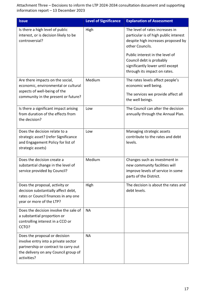 1.1 The purpose of this report is for the Council to confirm direction on what is to be included in draft documents in its proposed Long Term Plan 2024-2034 (LTP) and for its LTP process. This direction from the Council will enable staff to include the Council’s proposals and changes in the draft LTP Consultation Document, supporting information, LTP-related policies and Activity Management Plans.