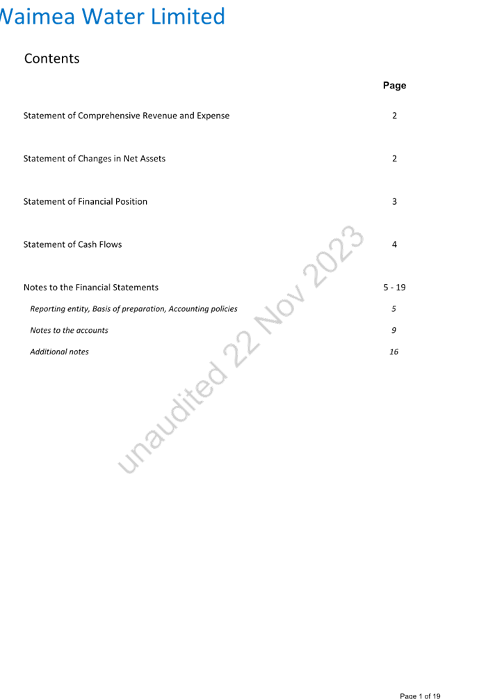 7.17 Waimea Water Limited - Quarterly Report to Shareholders............................... 186