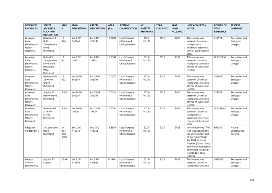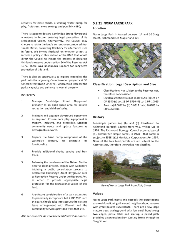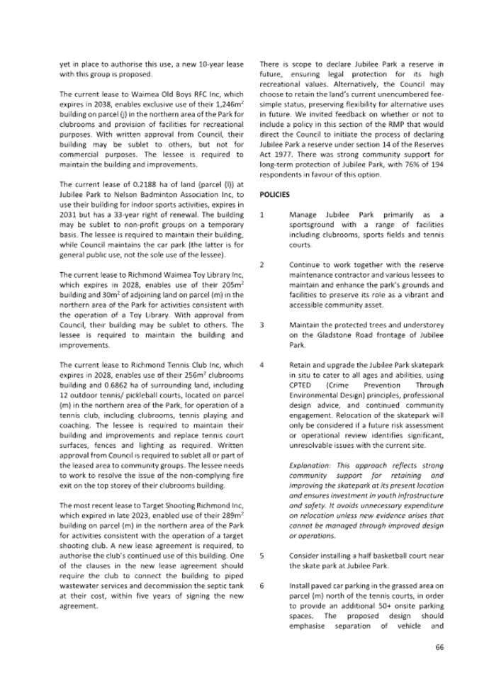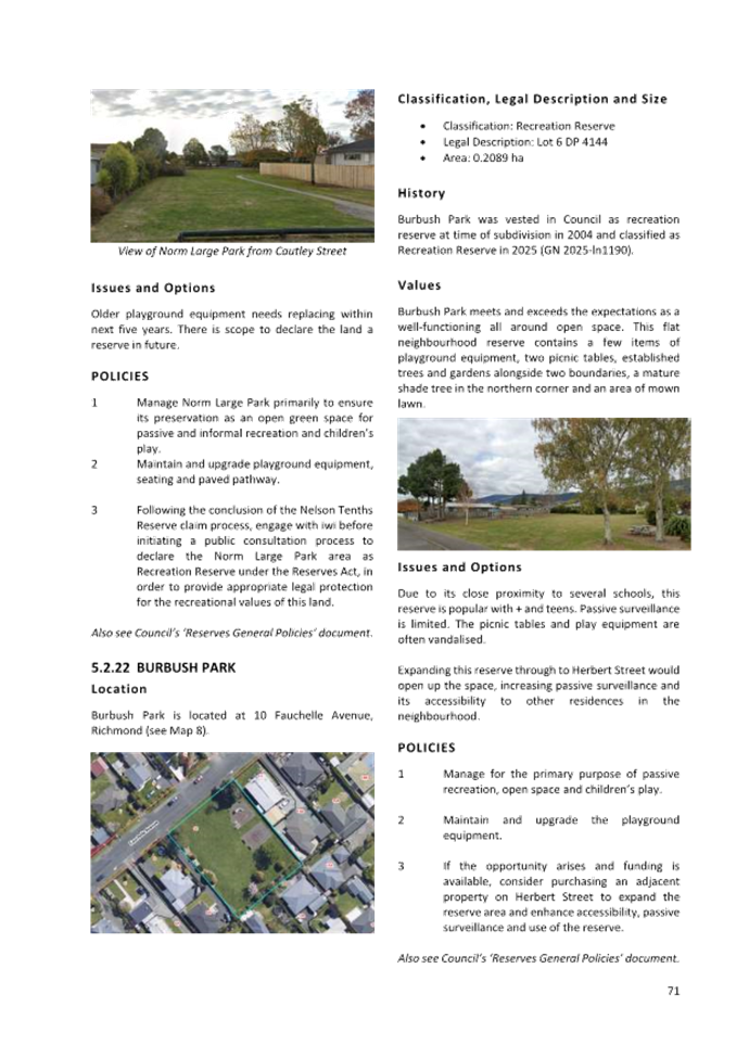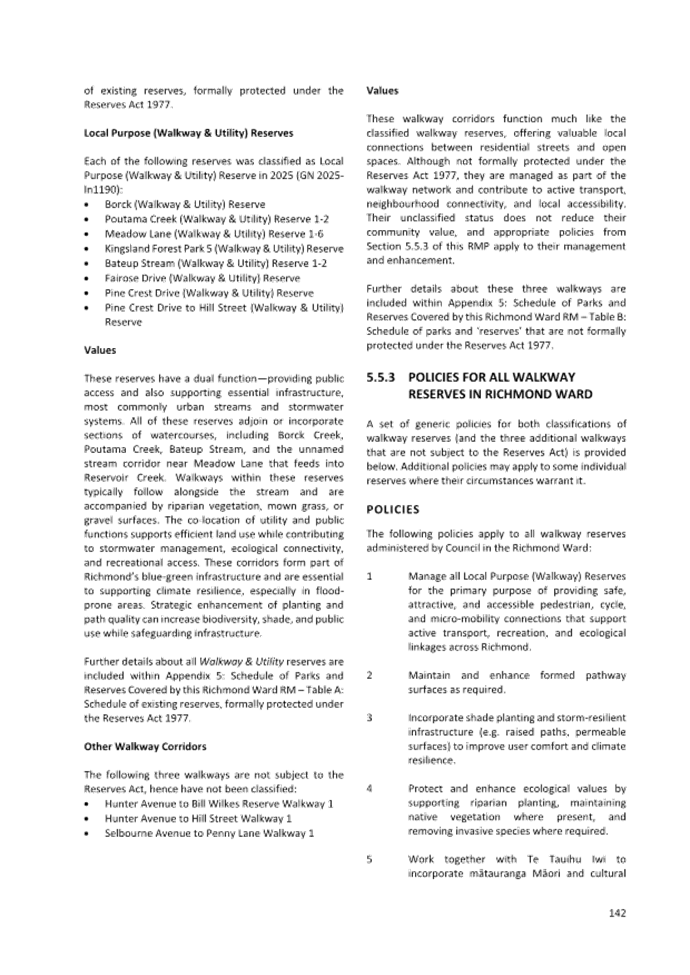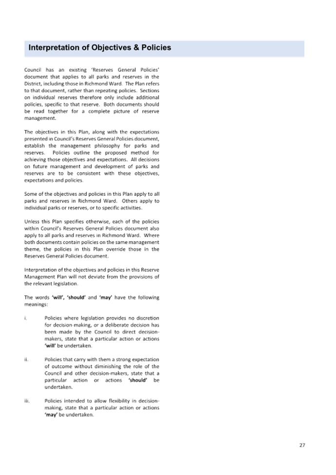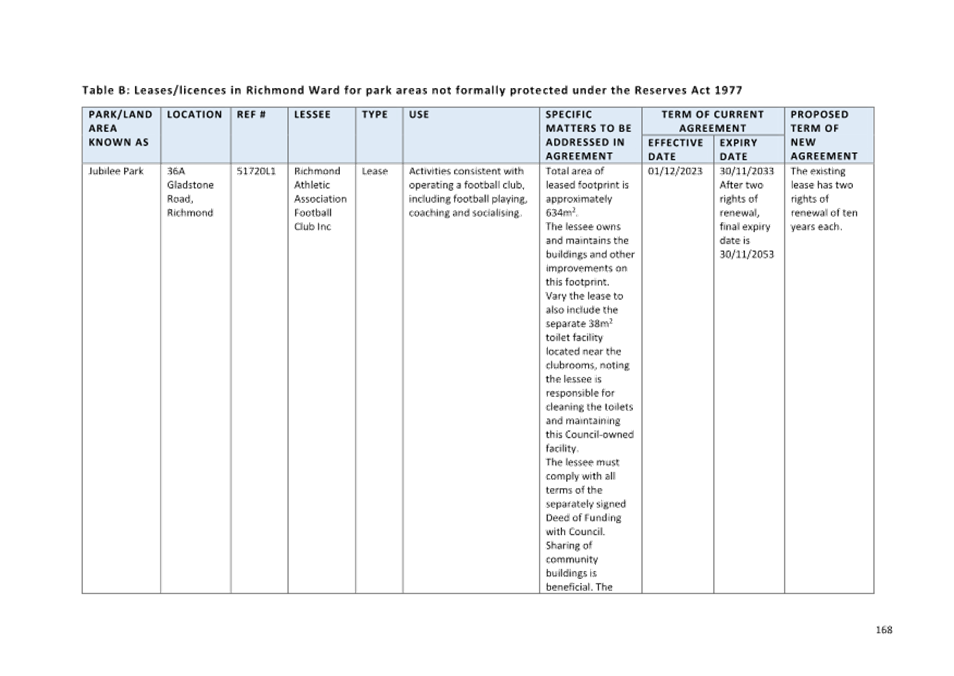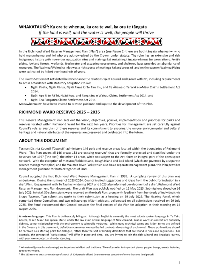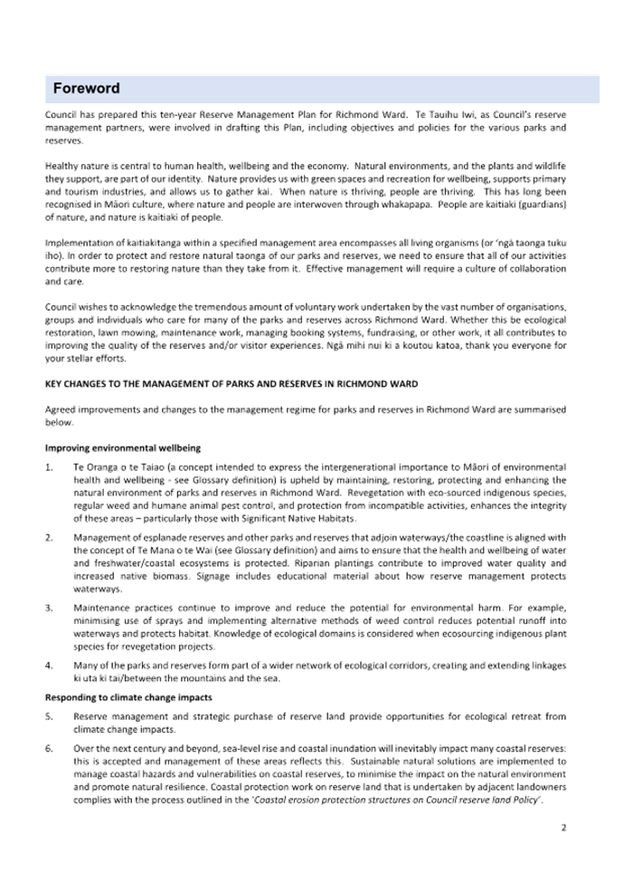 7.3 Adoption of the Richmond Ward Reserve Management Plan............................ 171