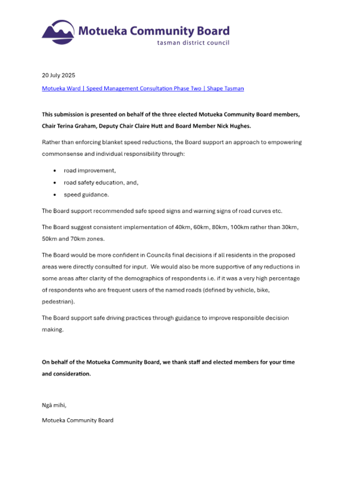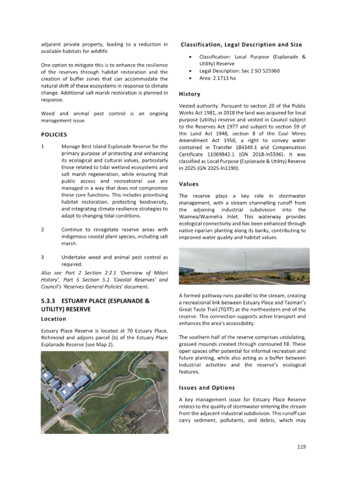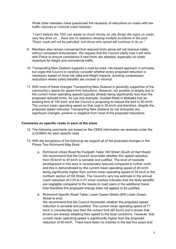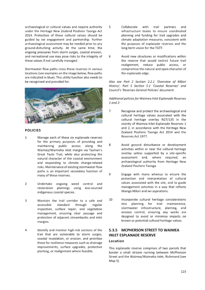 13.5 Consequently, this proposal does not detract from the Council’s and Government’s plans, policies and legal obligations relating to climate change (e.g. Tasman Climate Response Strategy and Action Plan, Emissions Reduction Plan, National Adaptation Plan etc.).