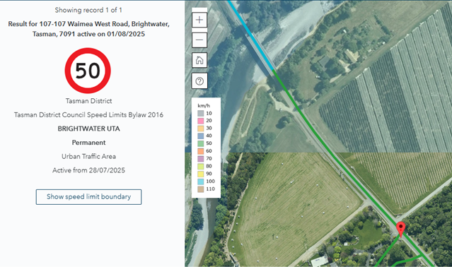 [2] Existing 50km/h sign is approximately 95m north of speed limit change recorded in the National Speed Limit Register