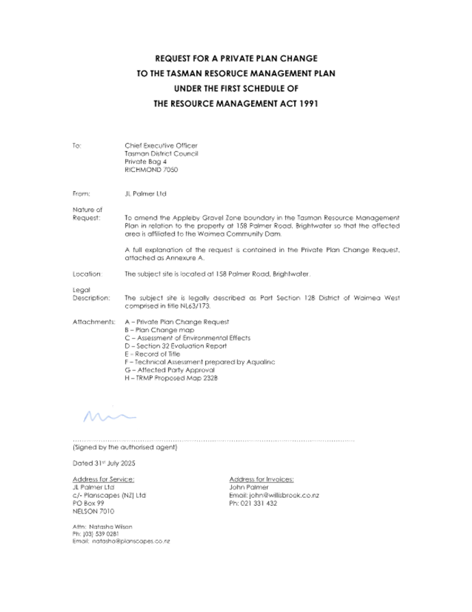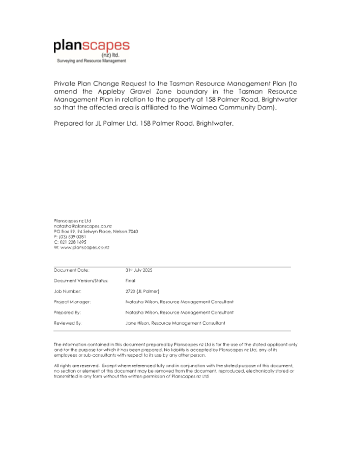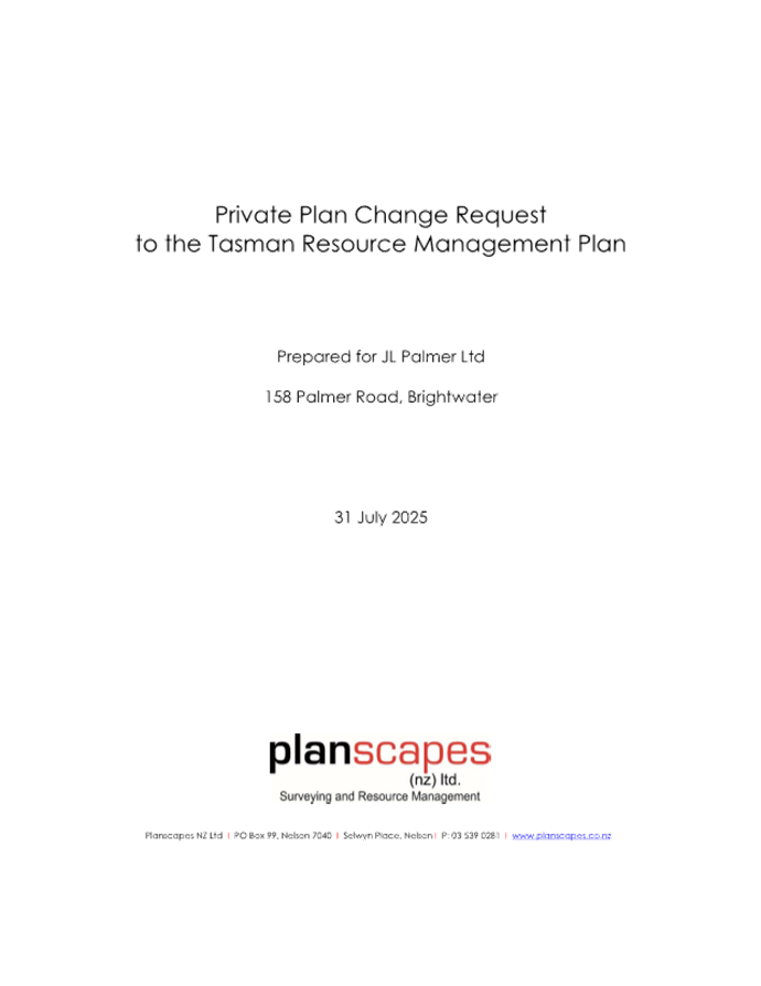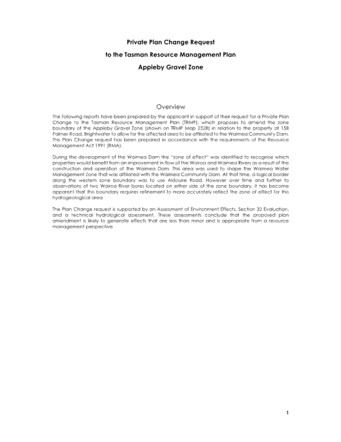 Private Plan Change Request to Tasman Resource Management Plan |