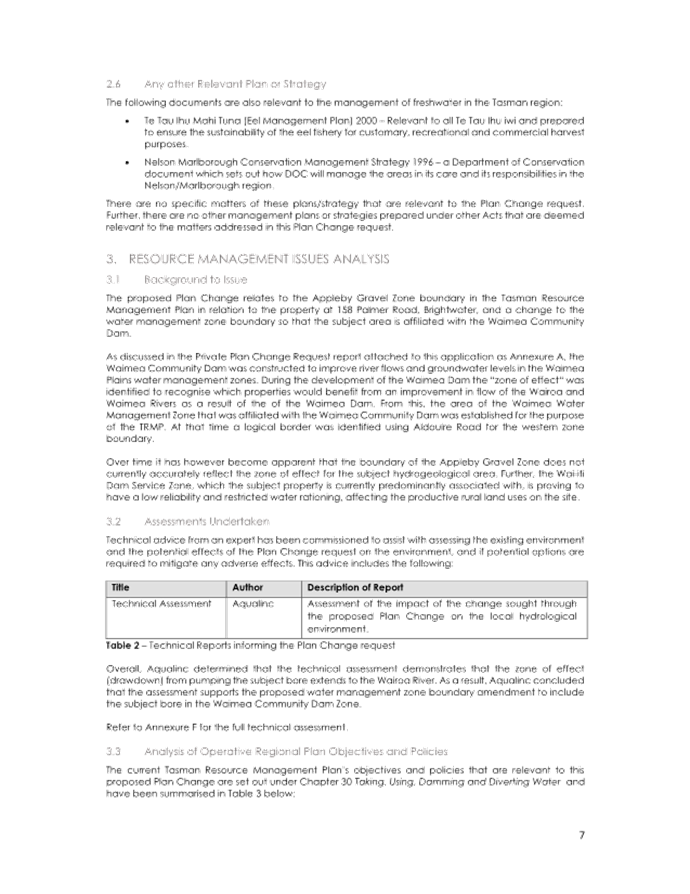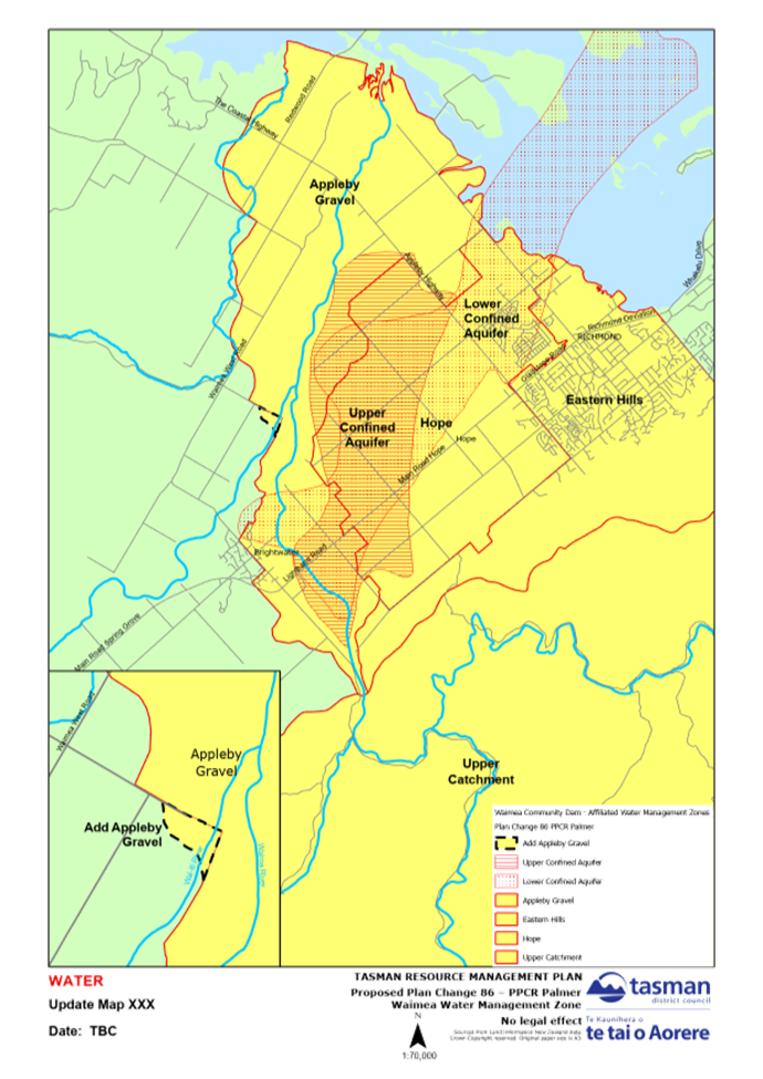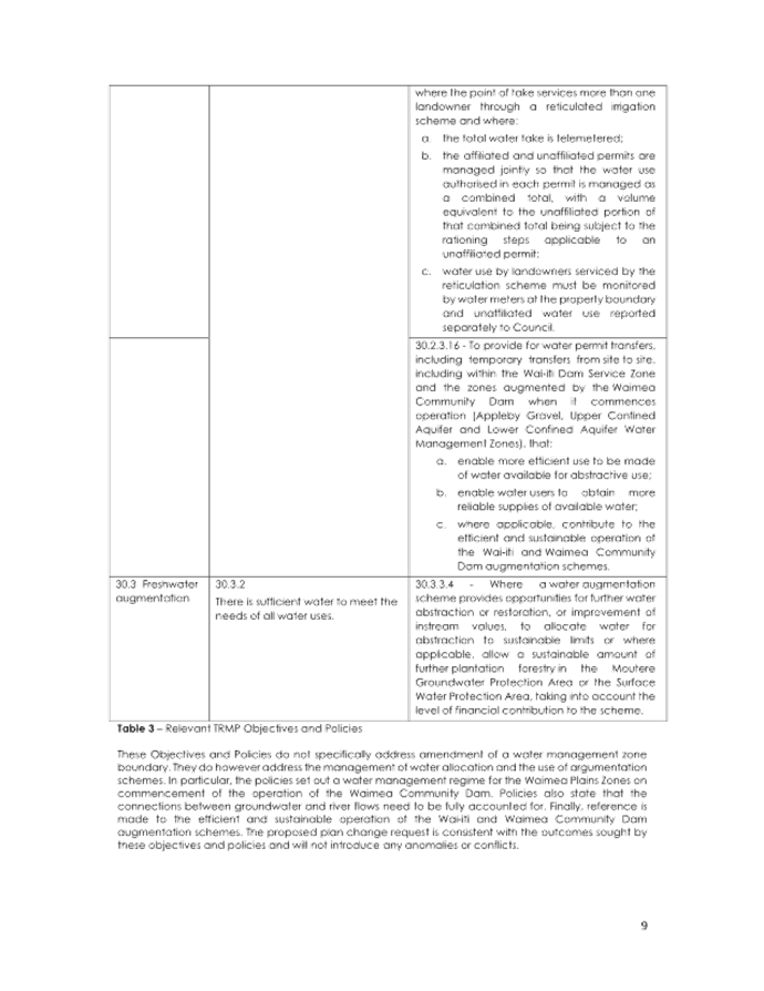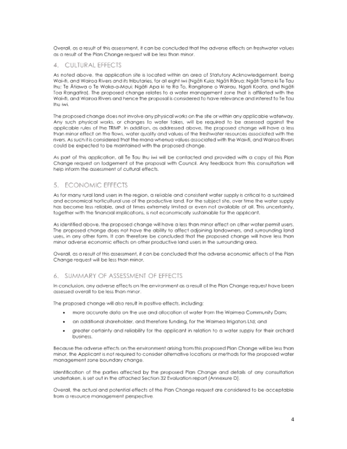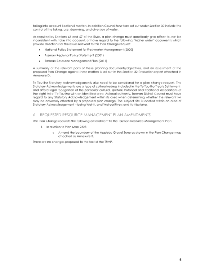 4.13 However, no changes are sought to any of the written provisions in the Tasman Resource Management Plan (TRMP), only map 232B. Any changes to resource consents required to take water will be addressed separately to the plan change.