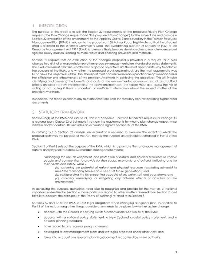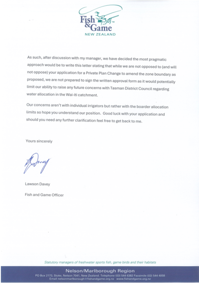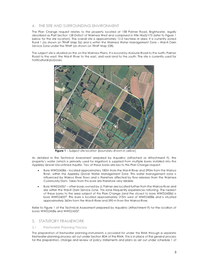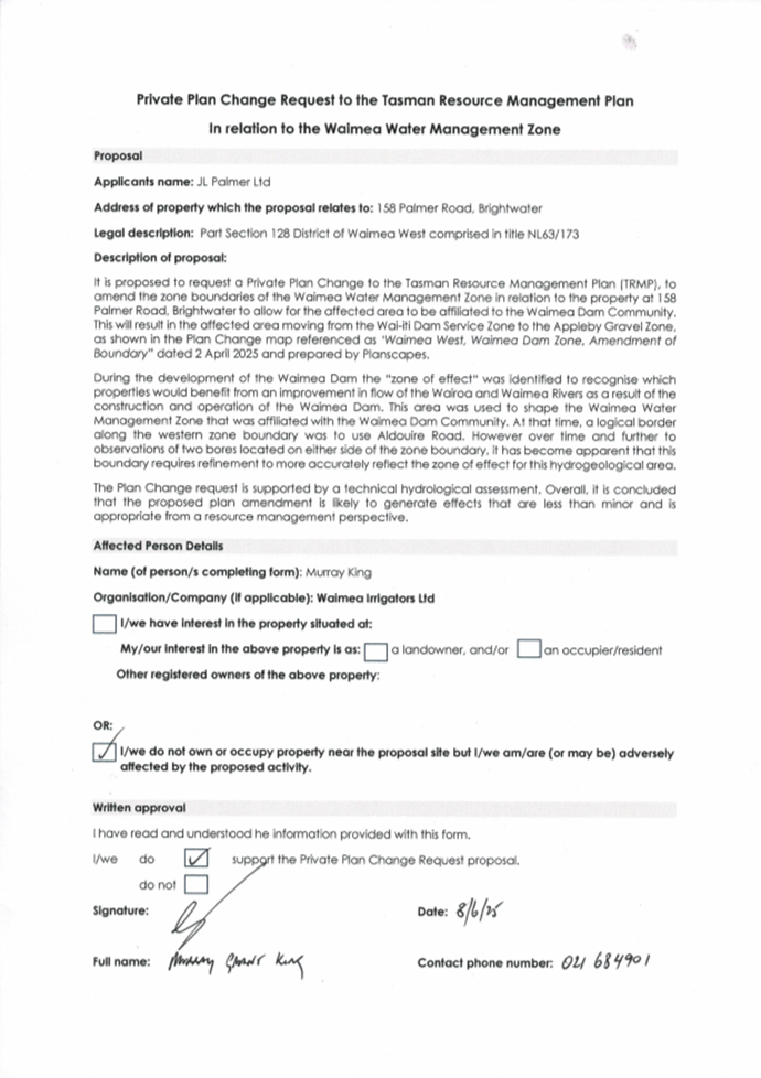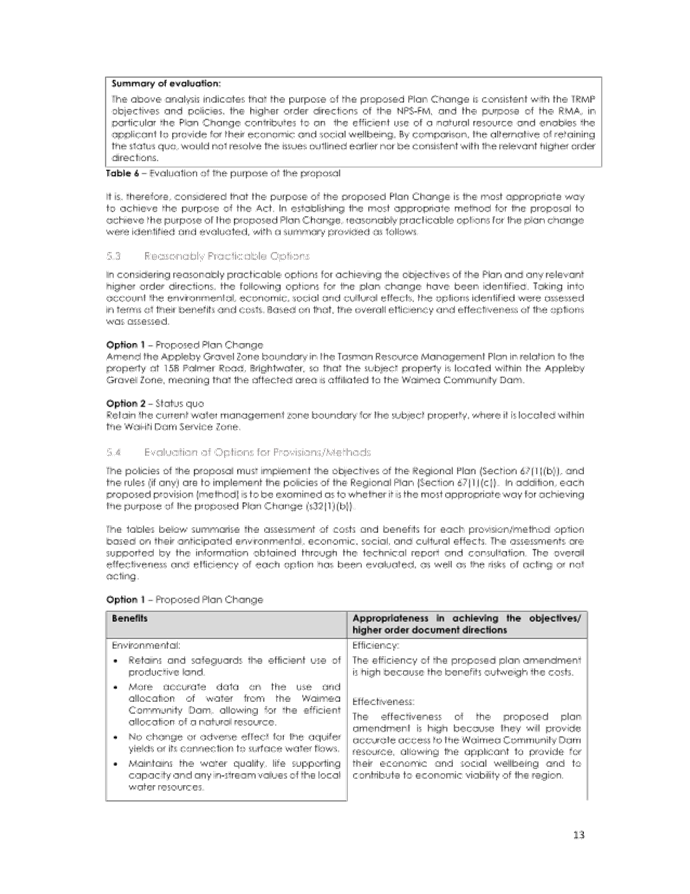 4.13 However, no changes are sought to any of the written provisions in the Tasman Resource Management Plan (TRMP), only map 232B. Any changes to resource consents required to take water will be addressed separately to the plan change.