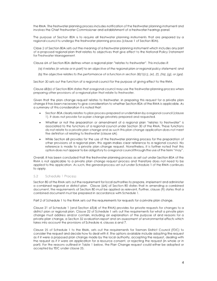 4.17 The requester has proposed that Part 2 of Schedule 1 of the RMA for private plan changes be adhered to, rather than the freshwater planning process under s80A of the RMA.