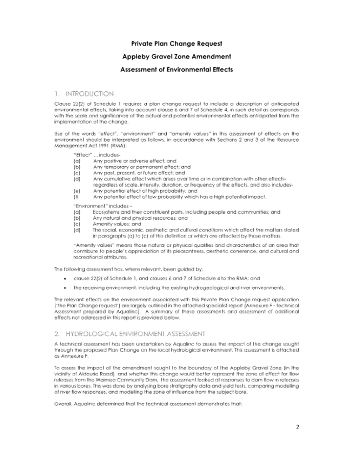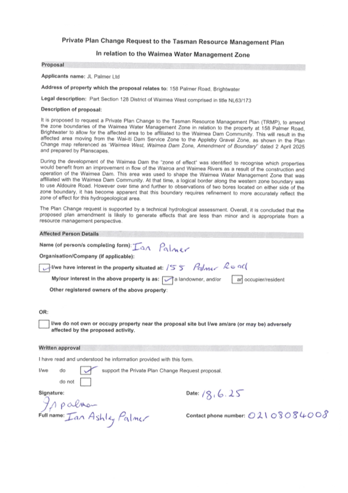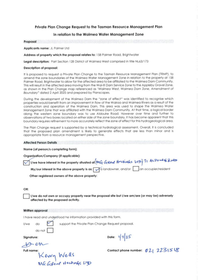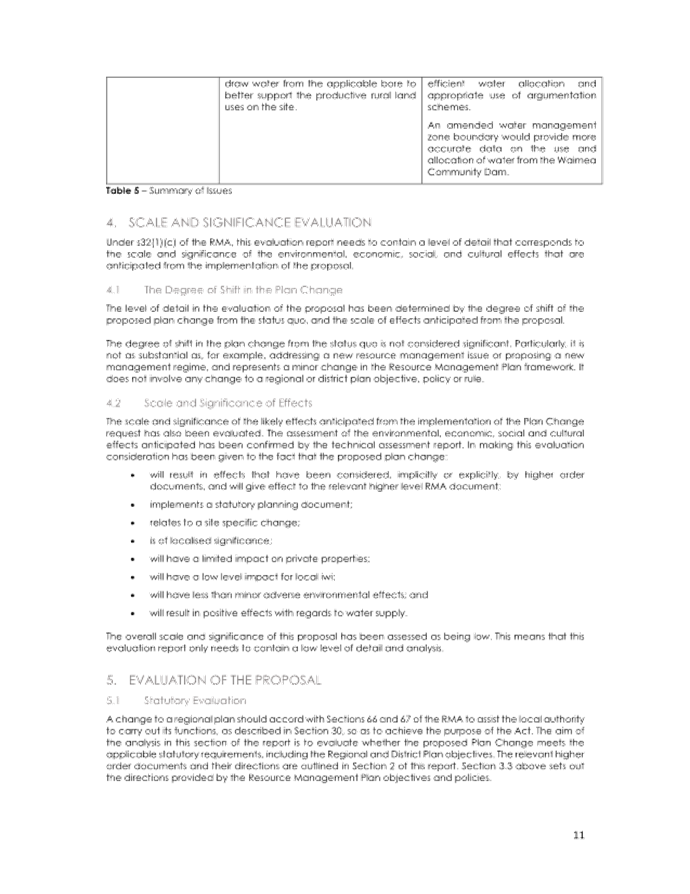 5.1 The requester has provided a thorough plan change request including an Assessment of Environmental Effects, s32 Evaluation Report, a Technical Assessment by Aqualink, peer reviewed by Andrew Fenemor (Landcare Research) and Affected Party Approvals.