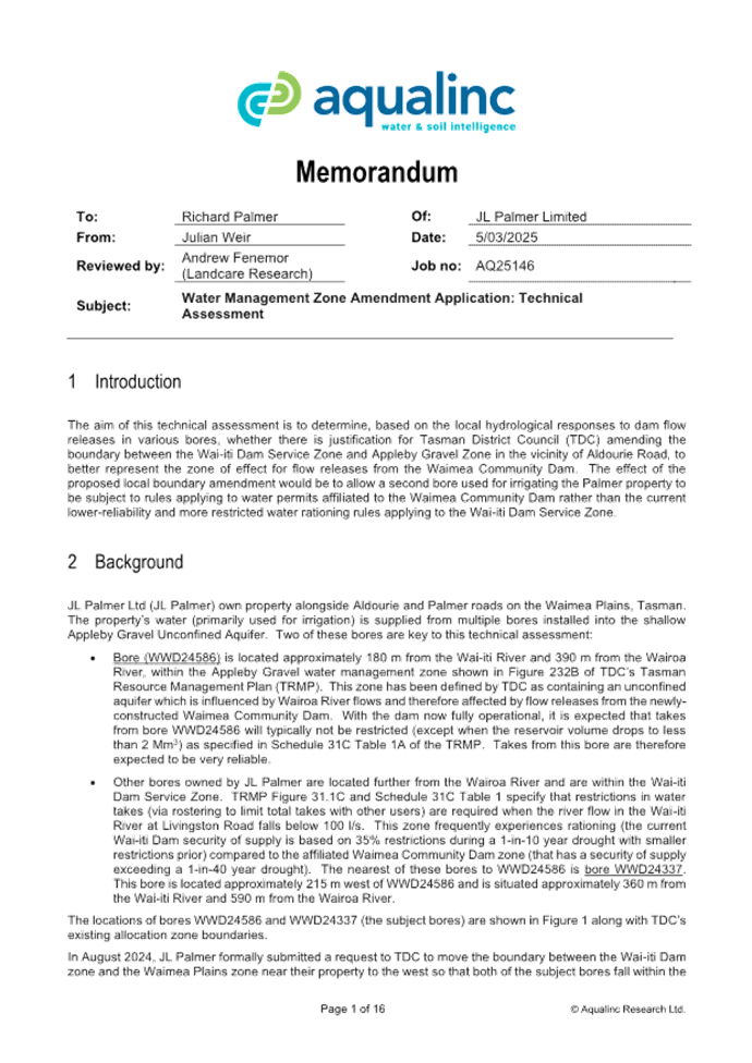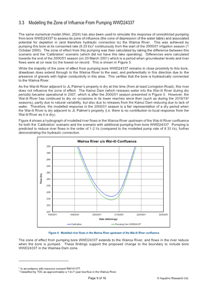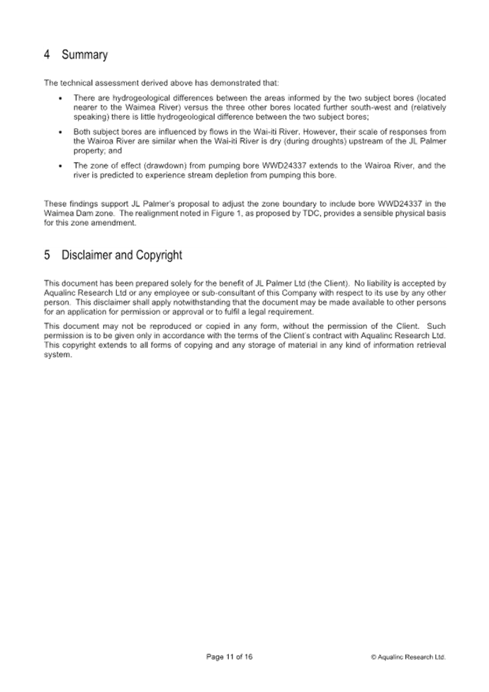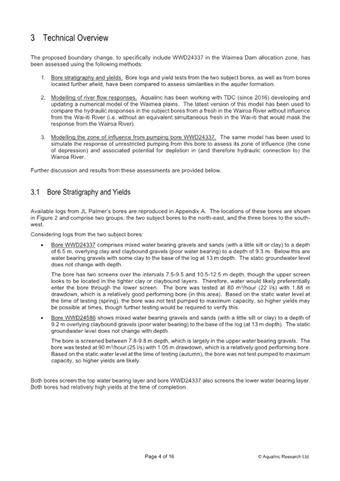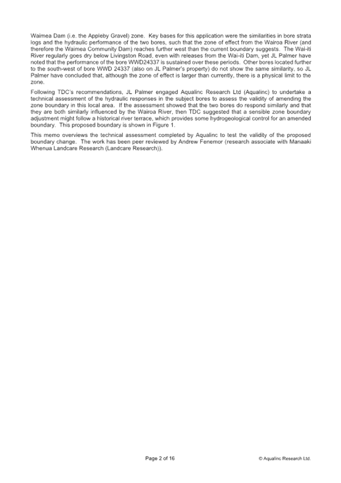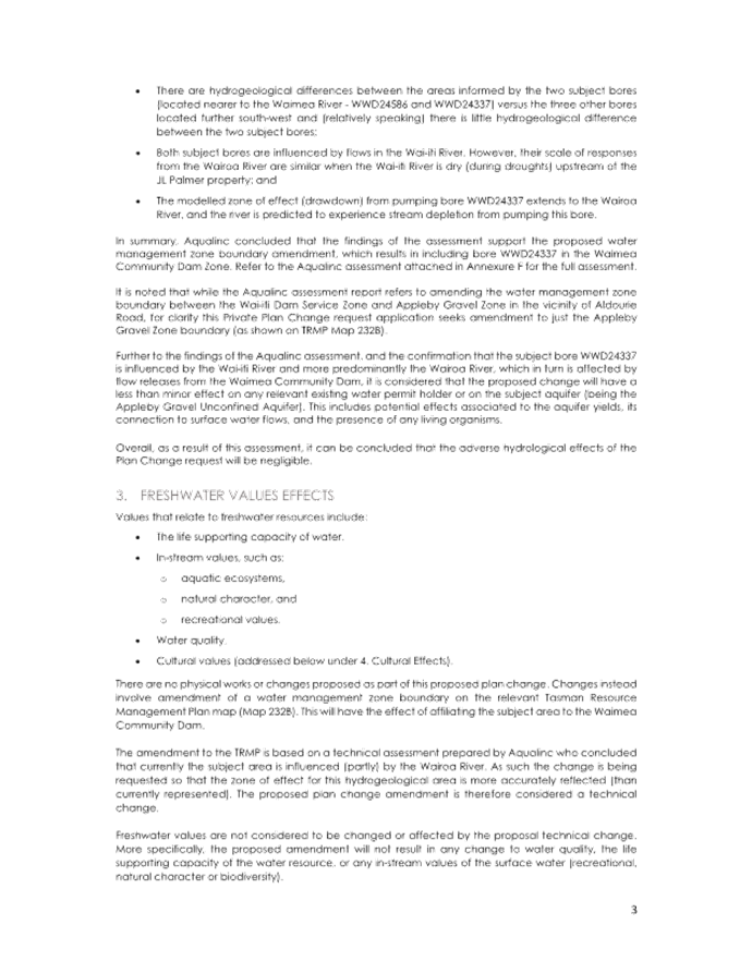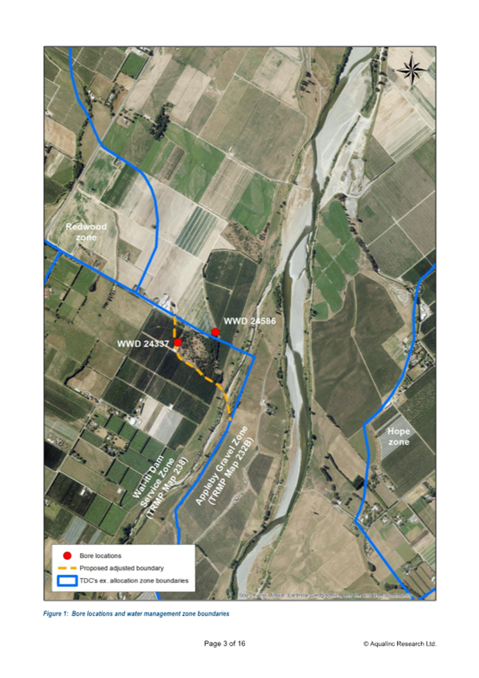 12.9 The aquifer boundary adjustment also involves land owned by Waimea West Hops Limited. Waimea West Hops Limited already has bores in the Appleby Gravel Zone with the associated benefits of access to Waimea Dam water. It is unlikely they would seek another bore in this area and if they did, a new water permit would be required.