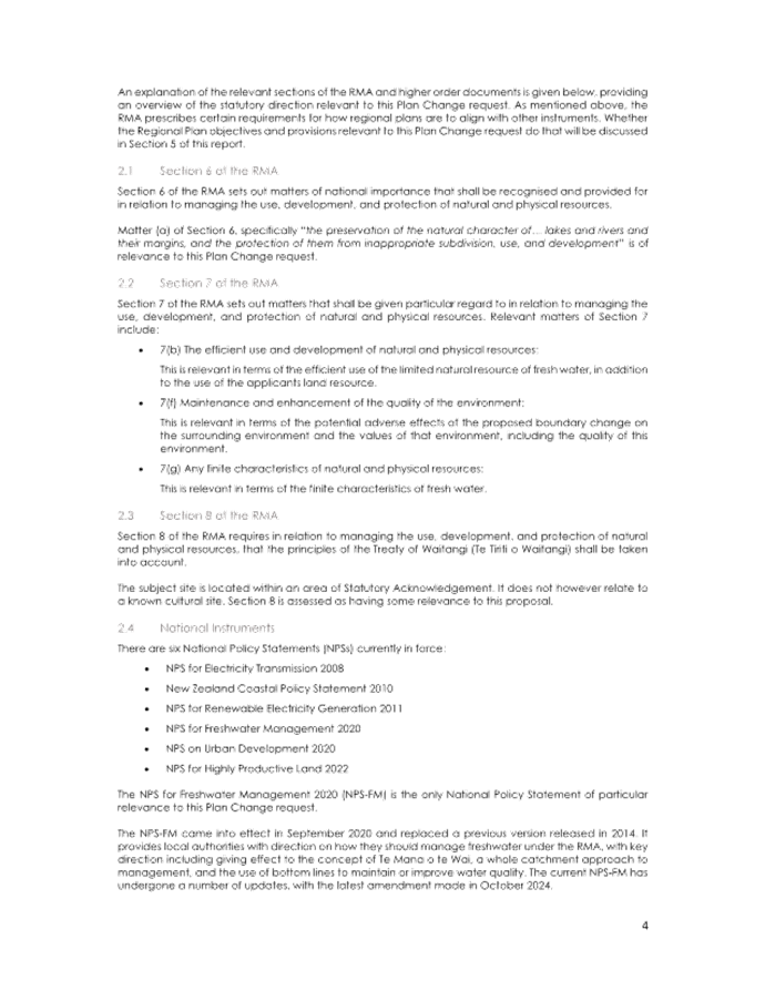 4.19 Furthermore, Section 80A relates to the freshwater planning process required to give effect to the National Policy Statement for Freshwater Management 2020 (NPS-FM).
