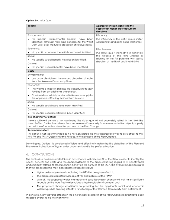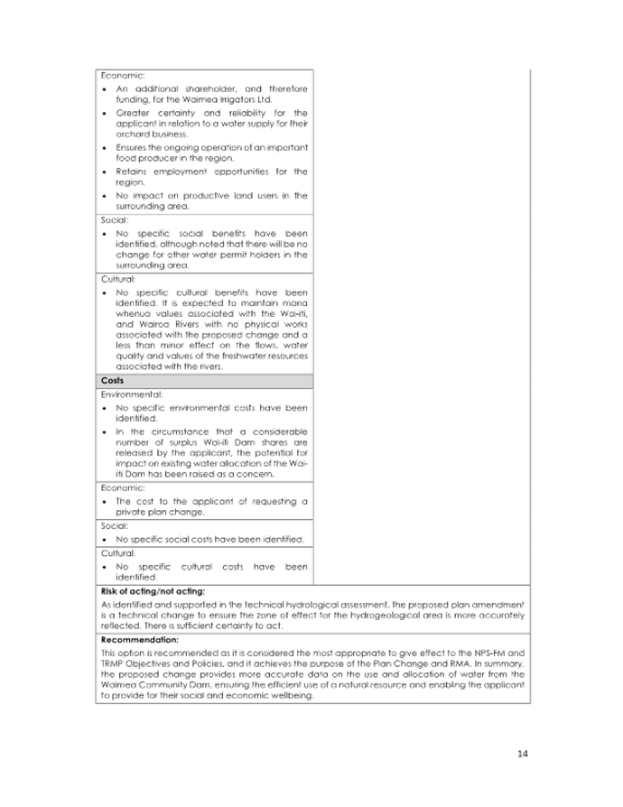 15.1 Considering the balance of legal, financial, operational and reputational risks to the Council, staff recommend that the Private Plan Change Request to amend the boundary between the Wai-iti Dam Service Zone and the Appleby Gravel Aquifer (PC86) is ‘accepted’.