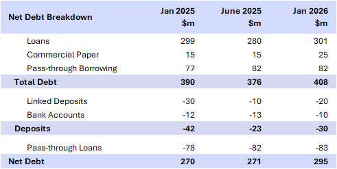1.5.2 Net debt has increased $23.8 million since 30 June 2025, largely reflecting expenditure associated with the severe weather events.