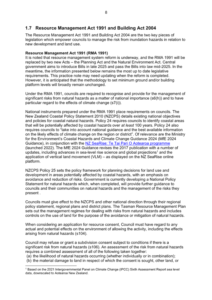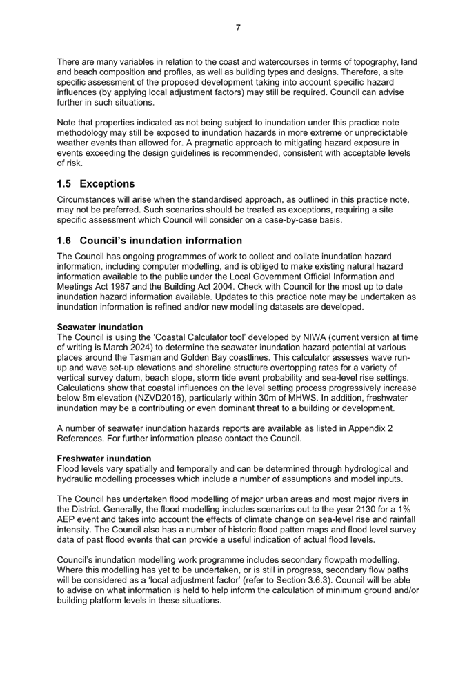 7.4 Adoption of Tasman Inundation Practice Note...................................................... 64