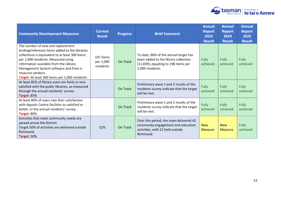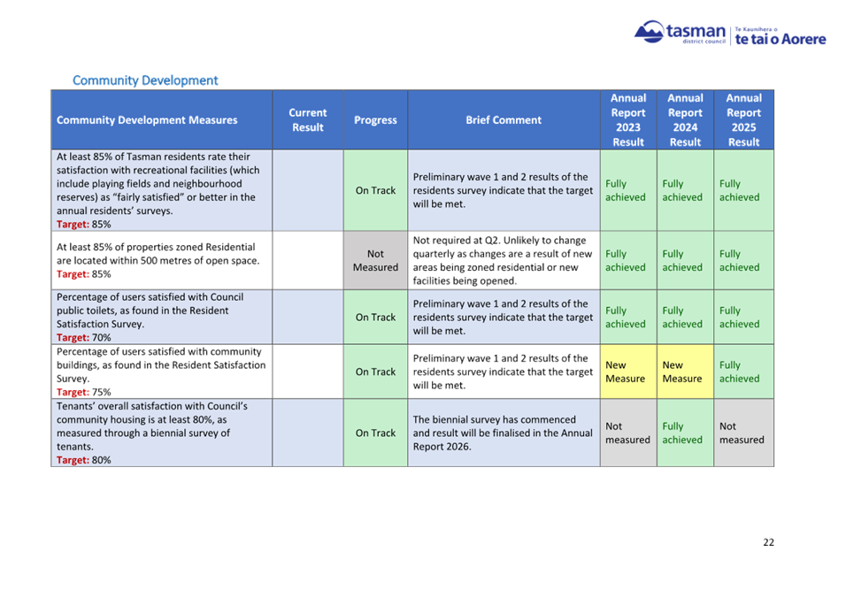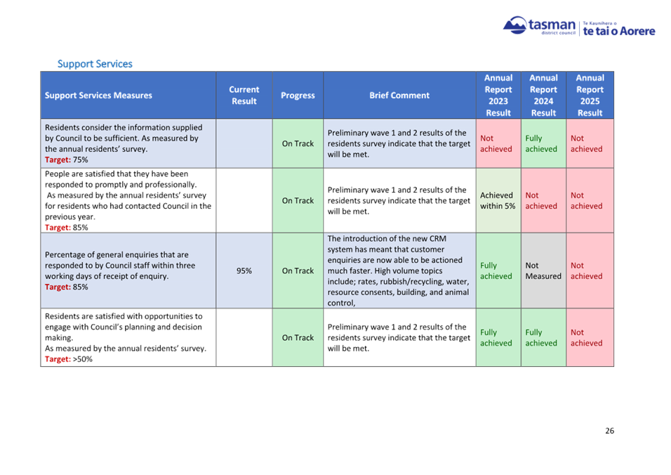 3.3 As this is an interim report, results are indicative only of Council’s Performance Measure outcomes for 2025/2026. Final results will be reported through the Annual Report 2025/2026, scheduled for adoption in October 2026.